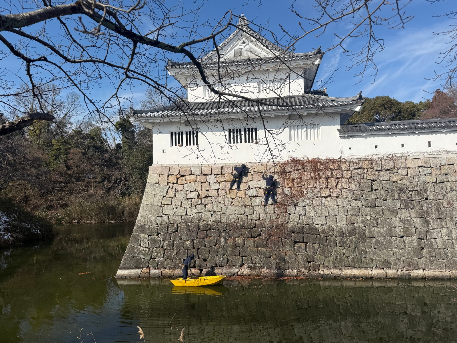 忍者姿で行った水口城跡石垣除草作業の様子が掲載されました。